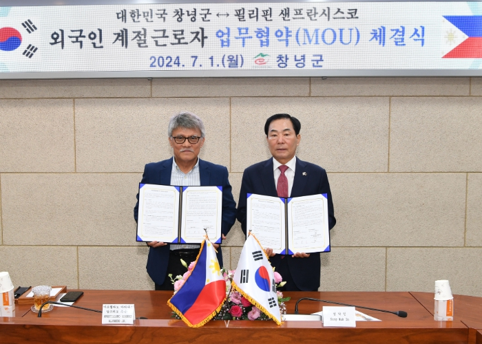 [뉴스서치] 창녕군은 지난 1일, 필리핀 샌프란시스코와 외국인 계절근로자 도입을 위한 업무협약(MOU)을 체결했다.
