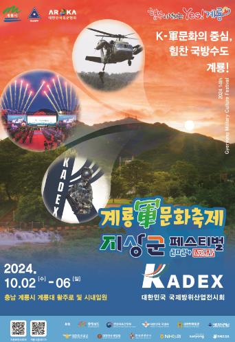 한편 ‘계룡軍문화축제·지상군페스티벌·KADEX2024’는 오는 10월 2일부터 6일까지 5일간 충청남도 계룡대 활주로와 엄사면 일원에서 동시에 개최될 예정이다.