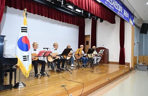 이날 개강식은 평생교육원 정기강좌 통기타반 수강생들의 통기타 연주로 포근한 분위기에서 시작됐고 이어서 김충섭 김천시장 인사 말씀과 이명기 김천시의회 의장 축사, 서미숙 강사의 강연 순으로 진행됐다.