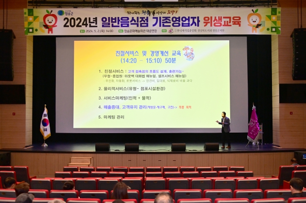 [뉴스서치] 청송군은 지난 5월 2일 청송문화예술회관 대공연장에서 일반음식점 기존 영업주 200여명이 참석한 가운데 위생교육을 실시했다.