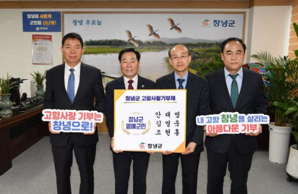 이날 세 명의 전 부군수들은 재직 시 창녕발전을 위해 노력한 공을 인정받아 제31회 창녕군민의 날 행사에서 명예군민으로 선정됐고, 마음의 고향인 창녕발전과 군민의 복리증진을 위한 고향사랑기부금 기탁으로 화답했다.