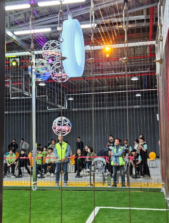 드론축구는 축구공 모양 드론볼을 조종해 3m 정도 높이 공중에 매달린 원형 골대에 집어넣어 승부를 가리는 미래형 ICT 레저스포츠로 유소년대회의 경우 전용 경기장(가로 8m, 세로 4m, 높이 3m) 안에서 5명이 한 팀을 이루어 3분 동안 진행되며 짧은 시간 고도의 집중력과 팀원들 간 협동심을 요하며 차세대 E-스포츠로 인기를 얻고 있다.