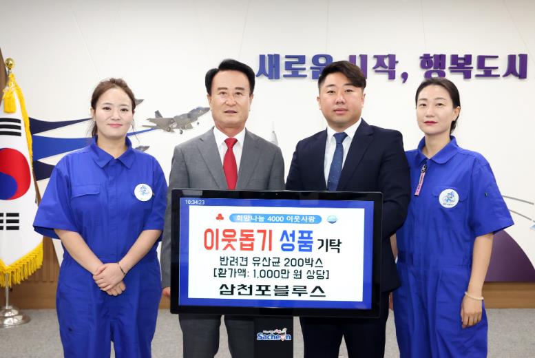 ▲ 사천시 삼천포 블루스, 반려견 유산균 기탁 |