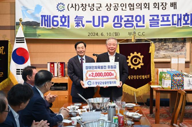 [뉴스서치] (사)창녕군상공인협의회는 지난 10일, 제6회 (사)창녕군상공인협의회 회장배 氣-UP 상공인 골프대회에서 창녕장애인체육회에 후원금 200만 원을 기탁했다.