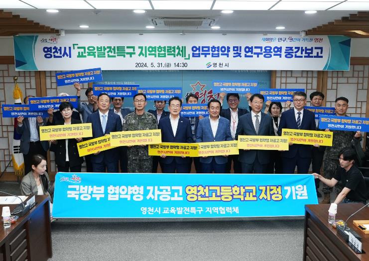 [뉴스서치] 영천시는 지난 31일 시청 영상회의실에서 교육발전특구 지역협의체 구성을 위한 업무 협약식을 개최하고, 이 자리에서 교육발전특구 일환으로 영천고가 한민고 모델인 국방부 협약형 자율형공립고를 영천시와 적극 협력해 유치 의사를 밝혀 화제가 됐다.