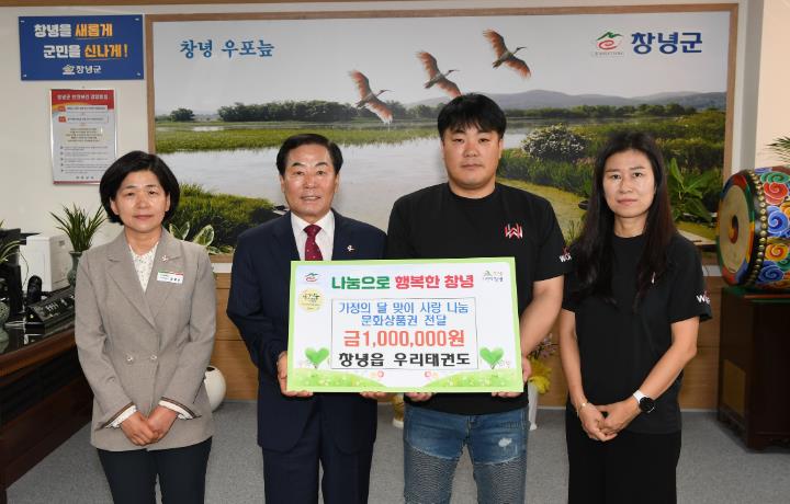 성낙인 군수는 “기탁해주신 성품을 우리 군의 아동과 청소년들에게 잘 전달하도록 하겠다”라며, “우리태권도가 보내주신 온기는 선한 영향력으로 전달돼 아이들이 바르게 성장하는 데 큰 도움이 될 것으로 확신한다”라고 전했다.