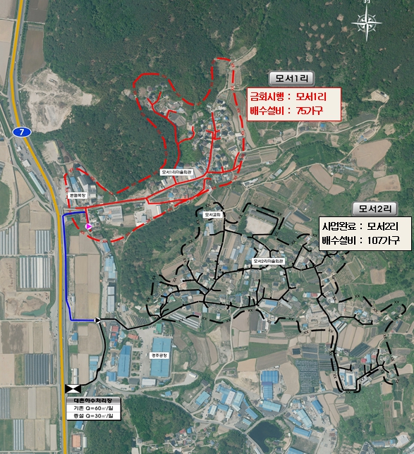 사업은 신규 하수관로를 2.1㎞ 설치하고 하수처리장 일일 시설용량을 60㎥ → 90㎥ 증설한다. 또 배수설비 75가구의 생활하수를 공공 하수도로 연결한다.