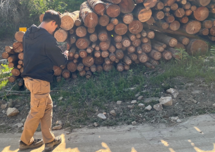 생산재 검척 자동화 기술은 라이다가 장착된 태블릿 PC로 나뭇더미를 스캔한 뒤, AI 기반의 자동화 앱을 통해 원목의 규격과 수량을 파악하는 방식이다. 사람이 직접 측정하던 기존 방식에 비해 조사 시간을 10배 이상 단축할 수 있어, 산림경영 현장 업무의 효율성을 획기적으로 높일 수 있다.