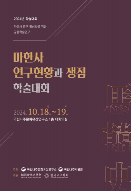 이번 학술대회는 마한사 연구 활성화를 위한 공동 학술연구의 일환으로 국립나주문화유산연구소와 국립나주박물관이 공동 주최하고, 한국고대사학회와 한국고고학회가 공동 주관한다. 학술대회는 마한사 연구현황과 쟁점, 향후 연구과제를 중점적으로 살펴볼 수 있는 9개의 발표와 토론으로 진행된다.