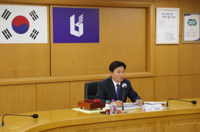 ▲ 본회의를 주재한 조용익 부천시장이이 노사 상생 정책을 위한 당부를 전하고 있다. |