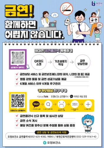 금연클리닉 등록을 원하는 누구나 QR코드를 이용해 등록하거나 카카오채널 ‘부천시 오정보건소 금연클리닉’을 검색해 등록할 수 있다.