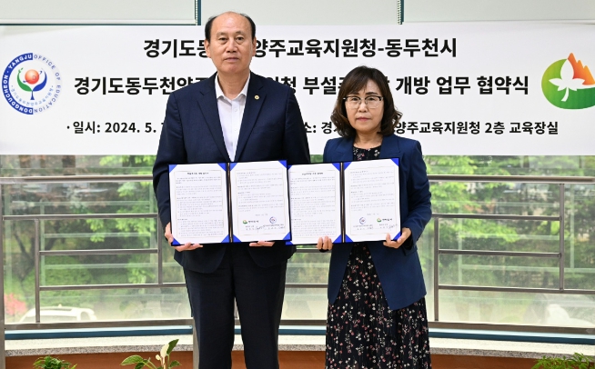 이날 협약식에는 박형덕 동두천시장과 김금숙 교육장 (동두천양주교육지원청)이 동두천양주교육지원청의 부설주차장 개방을 위해 협력을 다졌다.