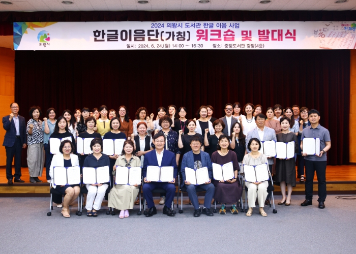 [뉴스서치] 의왕시는 6월 24일 중앙도서관 4층 강당에서 ‘2024 의왕시 한글이음사업 설명회’ 및 ‘한글이음단 발대식’을 개최했다고 밝혔다.