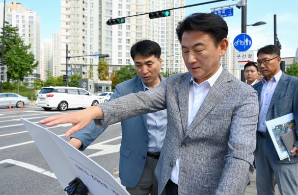 ▲ 김동근 시장이 최근 민락‧고산지구 주민들의 교통불편을 해소하고자 현장점검을 진행하고 있다. |