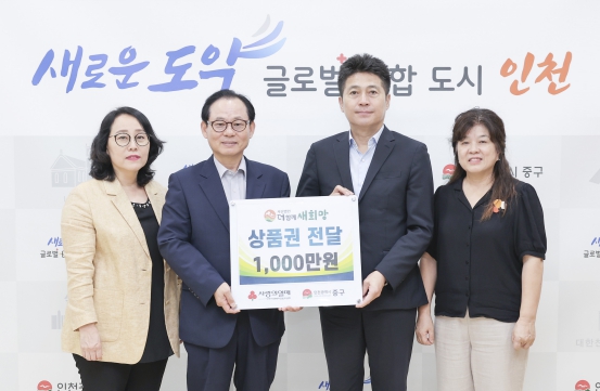 ▲ 사단법인 더함께새희망, 인천 중구에 추석맞이 상품권 1,000만 원 기탁 |