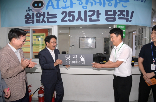 [뉴스서치] 광주광역시는 1일 인공지능(AI) 시대에 발맞춰 특광역시 중 처음으로 ‘직원 당직제’를 폐지, 뜨거운 안녕을 고했다. 대신 ‘AI 당지기’를 특별채용하고 당직 전담인력을 확보해 24시간 운영하는 재난안전상황실과 통합 운영한다.