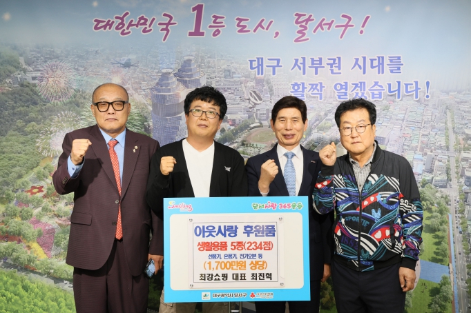 이태훈 달서구청장은“가정의 달을 맞아 지역에 선한 영향력을 보여주신 후원자의 온정에 진심으로 감사의 말씀을 드린다. 어려운 이웃들에게 후원자의 따뜻한 마음이 전해질 수 있도록 후원품은 잘 전달하겠다.”고 말했다.