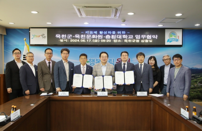 황규철 옥천군수와 유정현 옥천문화원장, 송승호 충청대학교 총장을 비롯한 관계자 10명이 참석한 가운데 지용제를 활용한 지역관광 콘텐츠 제작, 옥천관광 활성화를 위한 상호 정보 공유, 옥천 관광지 연계 관광상품·체험 프로그램 개발 등 옥천군 관광 활성화를 위해 3개 기관이 협력하기로 했다.