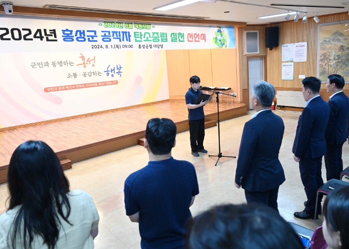 [뉴스서치] 홍성군은 기후변화 위기의 심각성을 인식하고 이에 대응하기 위해 1일 ‘2024 공직자 탄소중립 실천 선언식’을 개최하고 2050 탄소중립 실현을 위한 선도적인 행보에 나섰다.