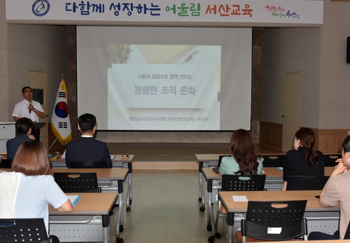 [뉴스서치] 충청남도 서산교육지원청은 5일 오전 서산교육지원청 청렴 내부 강사인 이상무 체육인성건강과장의 주재로 청렴(부패방지) 교육을 실시했다.