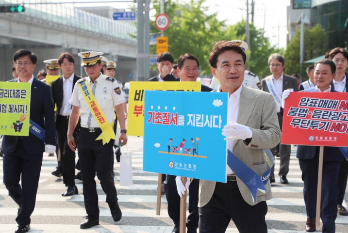 이번 캠페인은 교통, 생활, 서민경제 등 도민 일상과 밀접한 3대 분야의 기초 질서를 바로 세우고자 마련된 자리로 김진태 도지사와 엄성규 강원경찰청장, 박상경 춘천경찰서장을 비롯해 도 교육청, 한국도로교통공단 강원본부, TS한국교통안전공단 춘천면허시험장 등 유관기관과 모범운전자회, 녹색어머니회, 자율방범대, 생활안전협의회 등 민간 협력단체가 함께 참여했다.