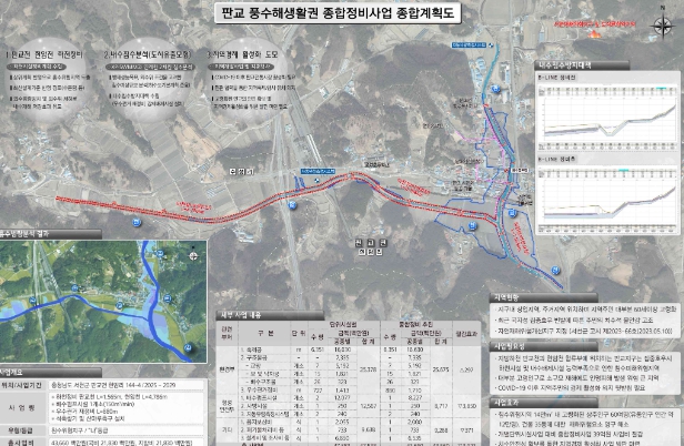 올해는 실시설계 등 사전절차를 이행하고 내년부터 2029년까지 판교천 1.57km, 현암천 4.79km에 대한 정비, 교량 5개소 재가설, 보/낙차공 15개소 및 배수펌프장, 사방시설소 등의 신규 개설 등 재해예방사업을 본격적으로 추진한다.