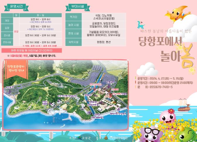 이상근 고성군수는 “따뜻한 봄날, 다양한 공연과 행사가 가득한 당항포관광지에서 가족, 친구 등 사랑하는 사람들과 함께 특별한 추억을 남기시길 바란다”라고 말했다.