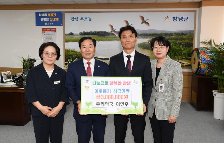 [뉴스서치] 창녕읍 우리약국 대표 이연수 약사는 지난 23일, 도움이 절실한 어려운 이웃에게 전해 달라며 성금 300만 원을 창녕군에 기탁했다.