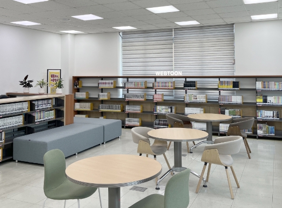 웹툰코너에는 1,556권의 다양한 장르의 도서가 비치되어 있어 이용자에게 신선한 재미와 휴식을 제공할 것으로 기대된다.