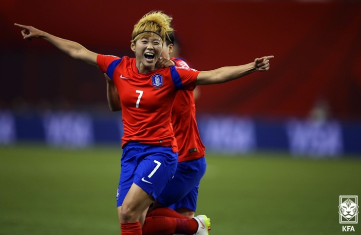 ▲ 지난 2015 FIFA 캐나다 여자월드컵 코스타리카와의 조별리그 2차전에서 득점 후 기뻐하는 전가을. |