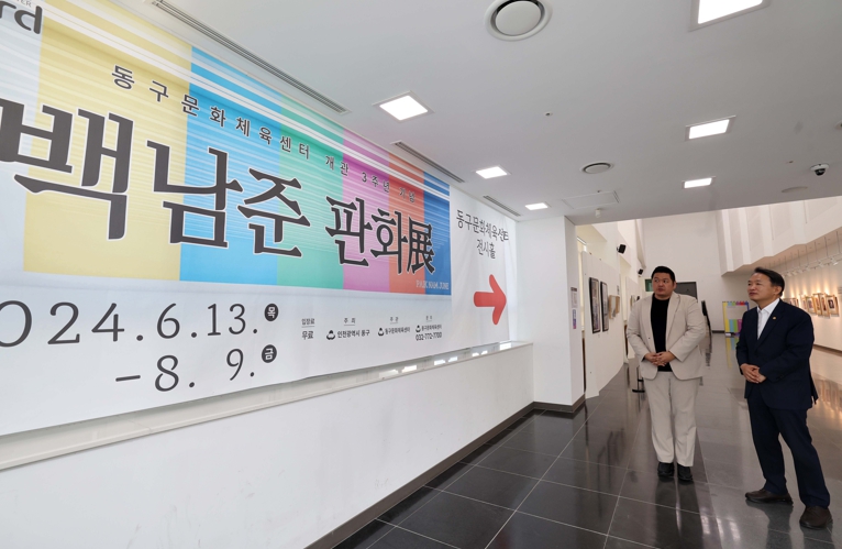 [뉴스서치] 김찬진 동구청장이 '백남준 판화전' 특별 전시회를 열고 있는 동구문화체육센터 전시홀을 방문했다. 동구 송림동에 위치한 동구문화체육센터는 다음달 1일 개관 3주년을 맞는다.
