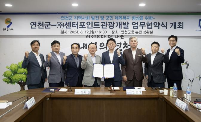 [뉴스서치] 연천군과 ㈜센터포인트관광개발은 지난 12일 연천군청 본관 2층 상황실에서 지역사회 발전 및 군민 체육 복지 향상을 위한 업무협약을 체결했다고 밝혔다.