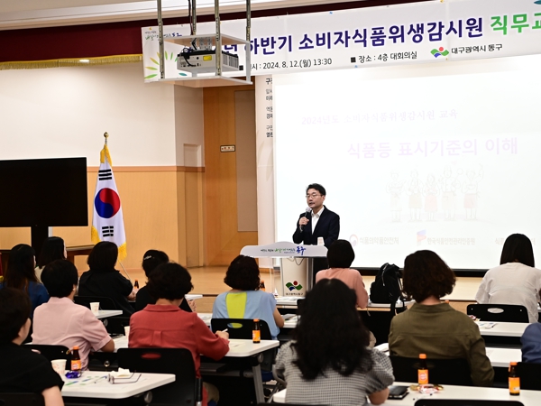 [뉴스서치] 대구 동구청 지난 12일 ‘2024년 하반기 소비자 식품위생감시원 정기교육’을 실시했다고 밝혔다.