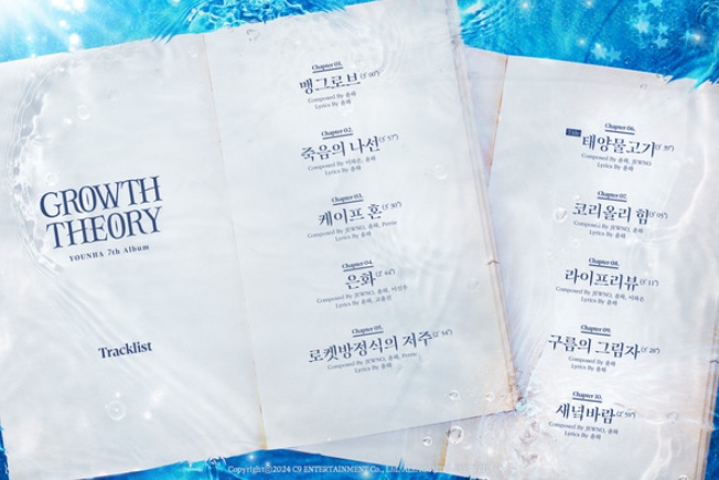 윤하는 23일 0시 공식 SNS를 통해 일곱 번째 정규앨범 'GROWTH THEORY (그로우스 띠어리)'의 트랙리스트를 공개했다.