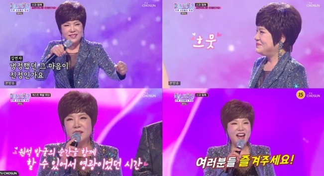 '진정인가요' 무대를 통해 김연자는 정통 트롯의 깊은 울림을 전했다. 특히 제자 나영을 살뜰히 챙기며 완벽한 하모니를 만들어낸 김연자는 나영을 바라보는 흐뭇한 미소로 훈훈함을 자아냈다.