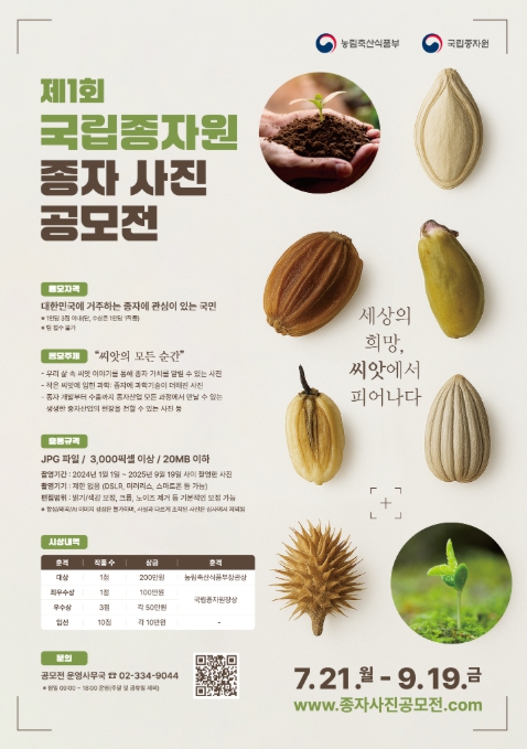 이번 사진 공모전의 주제는 ‘씨앗의 모든 순간’으로, 출품내용은 우리 삶에서 씨앗이 들려주는 소소한 이야기부터 종자에 입혀진 첨단 과학기술, 생생한 종자산업 현장 등을 사진으로 담으면 된다.