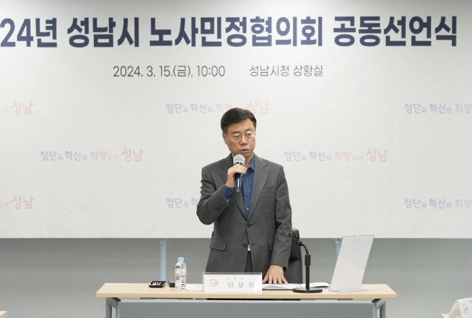 이날 공동선언에는 신상진 성남시장을 비롯해 노동자 대표인 박인수 한국노총 성남지역지부 의장, 사용자 대표인 산업단지관리공단 성명기 이사장, 시민 대표인 판교 낙생농협 정재형 조합장 등이 참석했다.