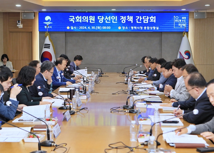 [뉴스서치] 평택시는 지난 30일 시청 종합상황실에서 국회의원 당선인을 초청해 정책간담회를 개최하고 평택시 발전을 위해 적극 협력하기로 했다.