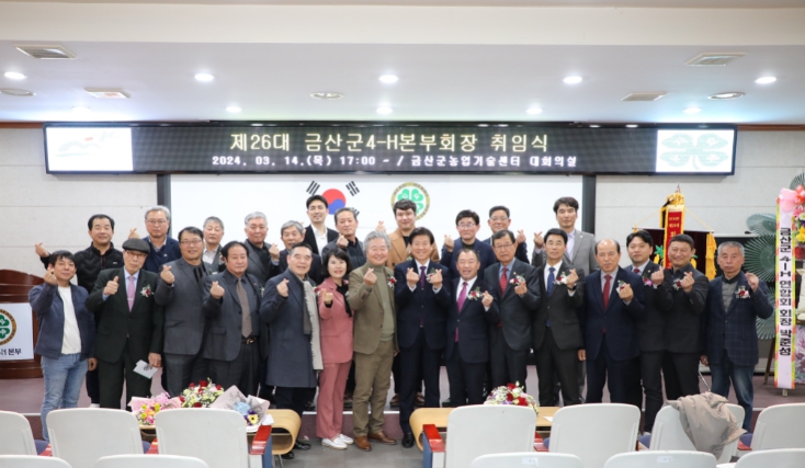 [뉴스서치] 제26대 금산군4-H본부 오희승 회장이 지난 14일 취임했다. 금산군농업기술센터 대회의실에서 열린 취임식에는 박범인 금산군수를 비롯해 4-H본부 회원 등 200여 명이 참석했다.