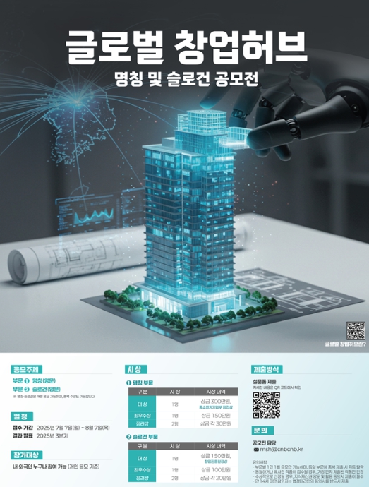 글로벌 창업허브 명칭 및 캐치프레이즈 공모전은 온라인 설문 플랫폼(모아폼)을 통해 진행되며, 공모전 포스터의 큐알(QR)코드 또는 케이-스타트업 누리집을 통해 참여할 수 있다. 글로벌 창업허브에 대한 보다 자세한 정보는 케이-스타트업 누리집을 통해 확인할 수 있다.