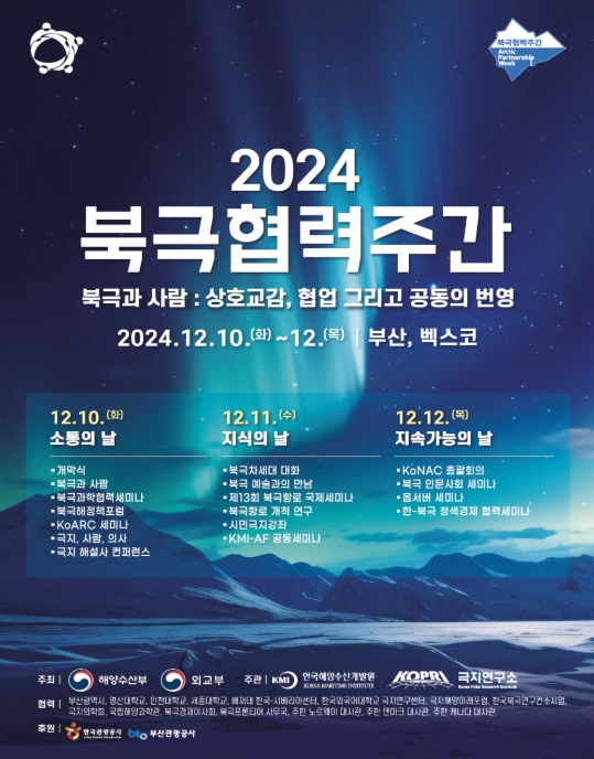 [뉴스서치] 해양수산부는 외교부와 함께 12월 10일부터 12일까지 부산 벡스코에서 ‘제9회 북극협력주간(Arctic Partnership Week)’을 개최한다고 밝혔다. 행사 기간 동안에는 일반 국민이 참여할 수 있는 다양한 부대행사도 준비될 예정이다.