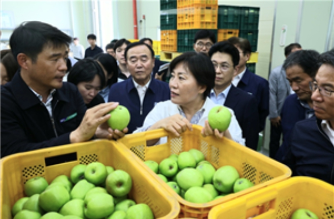 ▲ 대구 군위군 햇사과 출하 현장 방문한 송미령 장관 |