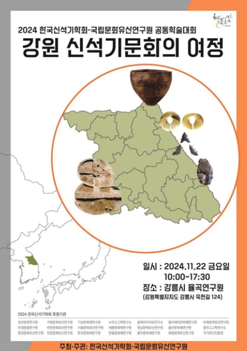 [뉴스서치] 국가유산청 국립문화유산연구원은 한국신석기학회와 함께 11월 22일 오전 10시 율곡연구원(강원 강릉시)에서 ‘강원 신석기문화의 여정’을 주제로 학술대회를 공동 개최한다.