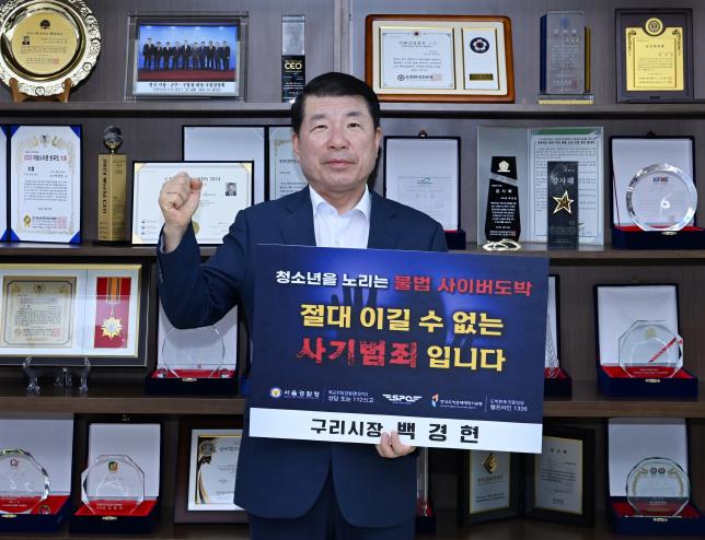 [뉴스서치] 백경현 구리시장은 8월 14일 ‘청소년 도박 근절 릴레이 챌린지’에 참여해 청소년을 대상으로 한 불법 사이버도박의 위험성을 알렸다.