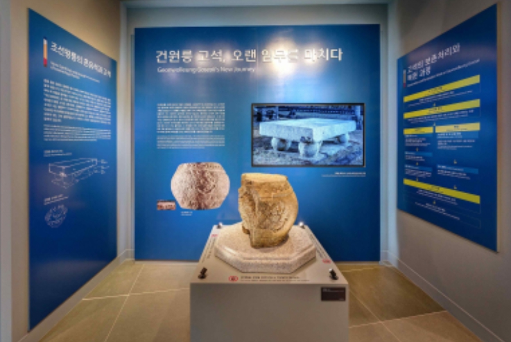 이번 전시는 건원릉 조성 당시 함께 만들어진 석물인 혼유석과 이를 받치고 있던 고석을 조명하는 자리로, 일부가 깨져 교체된 기존 고석도 실물 전시한다.