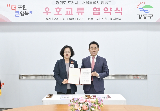 이날 협약식에는 백영현 포천시장과 이수희 강동구청장을 비롯해 양 도시 관계 공무원 20여 명이 참석했다.