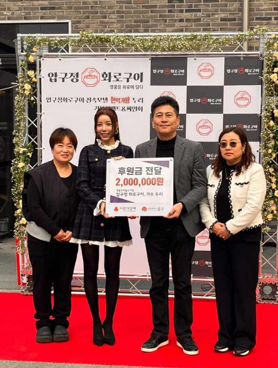 ▲ 압구정화로구이 영종도하늘도시점, 전속모델 가수 두리와 현금 기탁 |