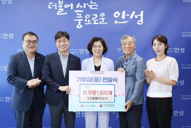 [뉴스서치] 안성시는 지난 12일 도드람엘피씨공사로부터 삼계탕 1,000개(10,000천원 상당)를 기부받았다고 밝혔다.