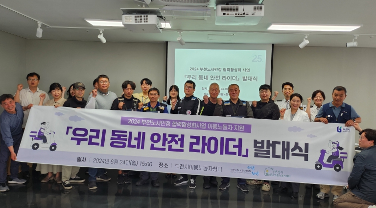 [뉴스서치] 부천시는 지난 24일 부천시이동노동자쉼터에서 부천지역노사민정협의회 주관으로 ‘우리 동네 안전 라이더’ 발대식을 개최했다고 밝혔다.