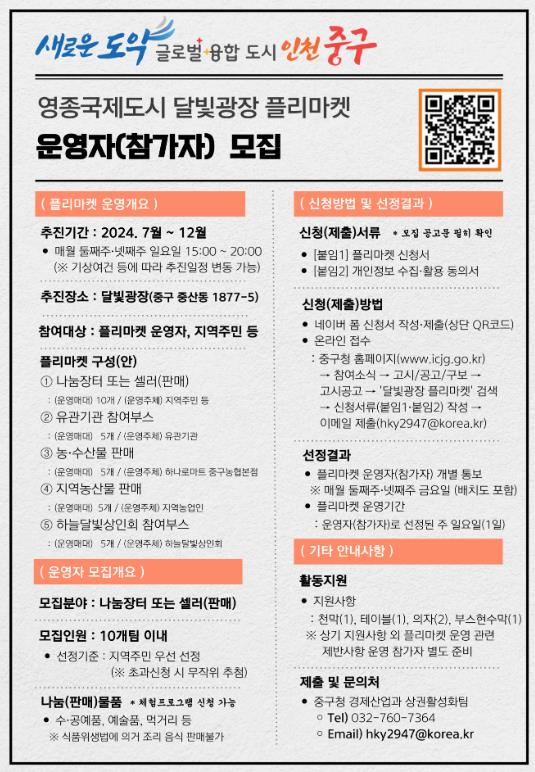 [뉴스서치] 인천시 중구는 올해 7월부터 지역주민과 함께하는 특별한 소통·화합·나눔의 축제 ‘달빛광장 플리마켓’을 개최한다고 19일 밝혔다.